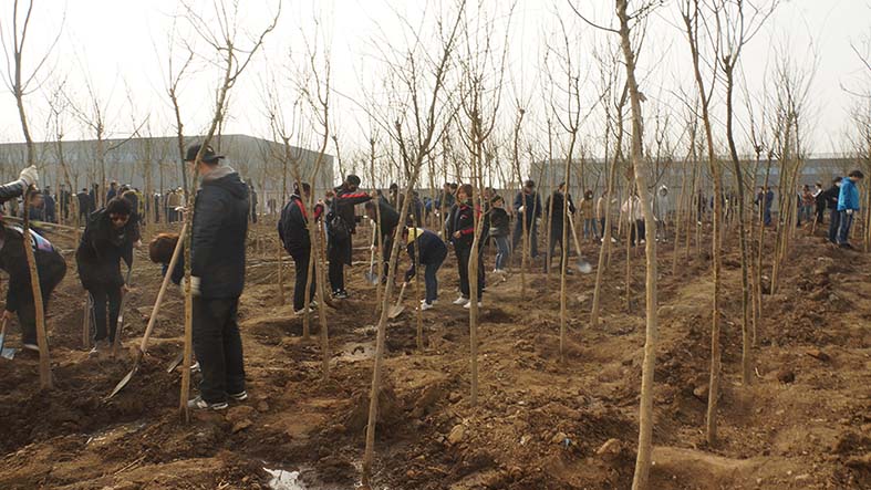 全體參加植樹活動(dòng)的員工準(zhǔn)時(shí)到位,在結(jié)束了短暫的人員組隊(duì),劃分區(qū)域和領(lǐng)取工具等準(zhǔn)備工作后,迅速的投入到植樹活動(dòng)當(dāng)中。各小組成員分工明確,積極踴躍。很多隊(duì)伍在組長的帶領(lǐng)下,領(lǐng)樹苗、放樹苗、填土、培土、澆水相互配合,干得熱火朝天。許多小組高效率高質(zhì)量的完成本隊(duì)植樹任務(wù)后,迅速投入到其他隊(duì)伍中,互幫互助。在全體員工有組織有紀(jì)律的高效協(xié)作的前提下,在不到兩個(gè)半小時(shí)的時(shí)間內(nèi),共計(jì)完成1800棵樹苗的栽種工作,綠化面積達(dá)12000多平方米。此次植樹活動(dòng),進(jìn)一步改善了控感廠區(qū)的生產(chǎn)環(huán)境,把原本空曠的廠區(qū)西南角的一片空地裝點(diǎn)得煥然一新!